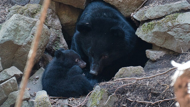 軽井沢では 11月下旬から 5月上旬頃まで冬眠します。出産したメスグマは冬眠あけが遅れます。※冬眠中でも素早く動くことができます。